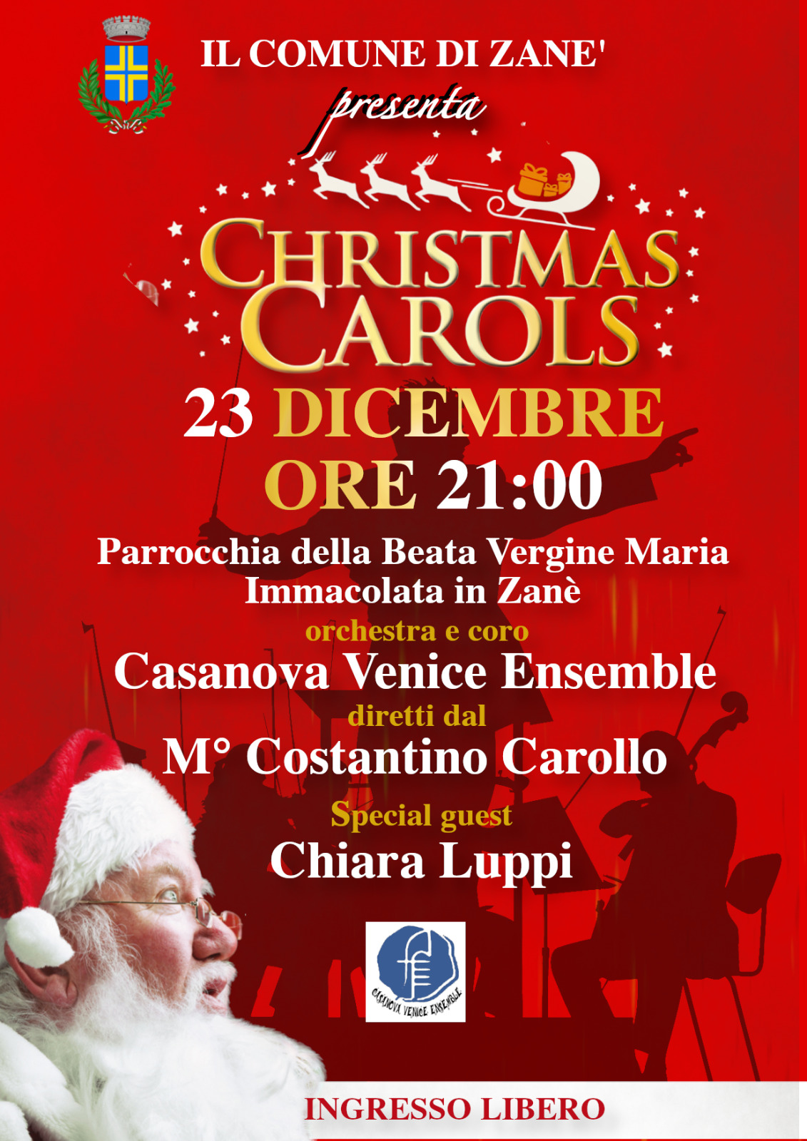 Cos'è Concerto di Natale orchestra e coro Casanova Venice EsembleMartedì 23 dicembre ore 21:00 presso la Chiesa della Beata Vergine Maria Immacolata